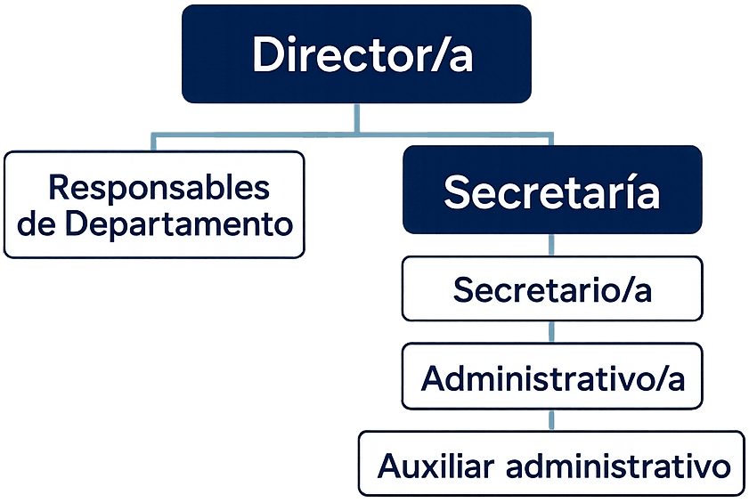 El organigrama presenta la estructura organizativa del centro, cuyo objetivo es aportar claridad sobre las funciones esenciales y la coordinación interna.