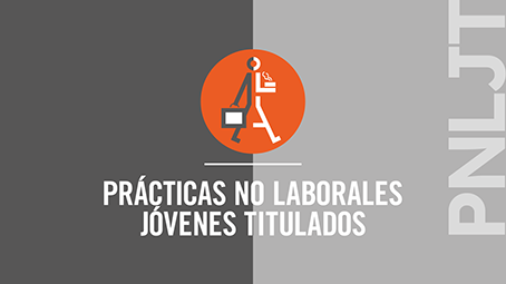 El folleto explica el programa de Prácticas No Laborales para Jóvenes Titulados, destinado a quienes tienen estudios finalizados pero sin experiencia profesional, ofreciendo una primera oportunidad formativa en empresas para mejorar su empleabilidad e iniciarse en el mercado laboral.